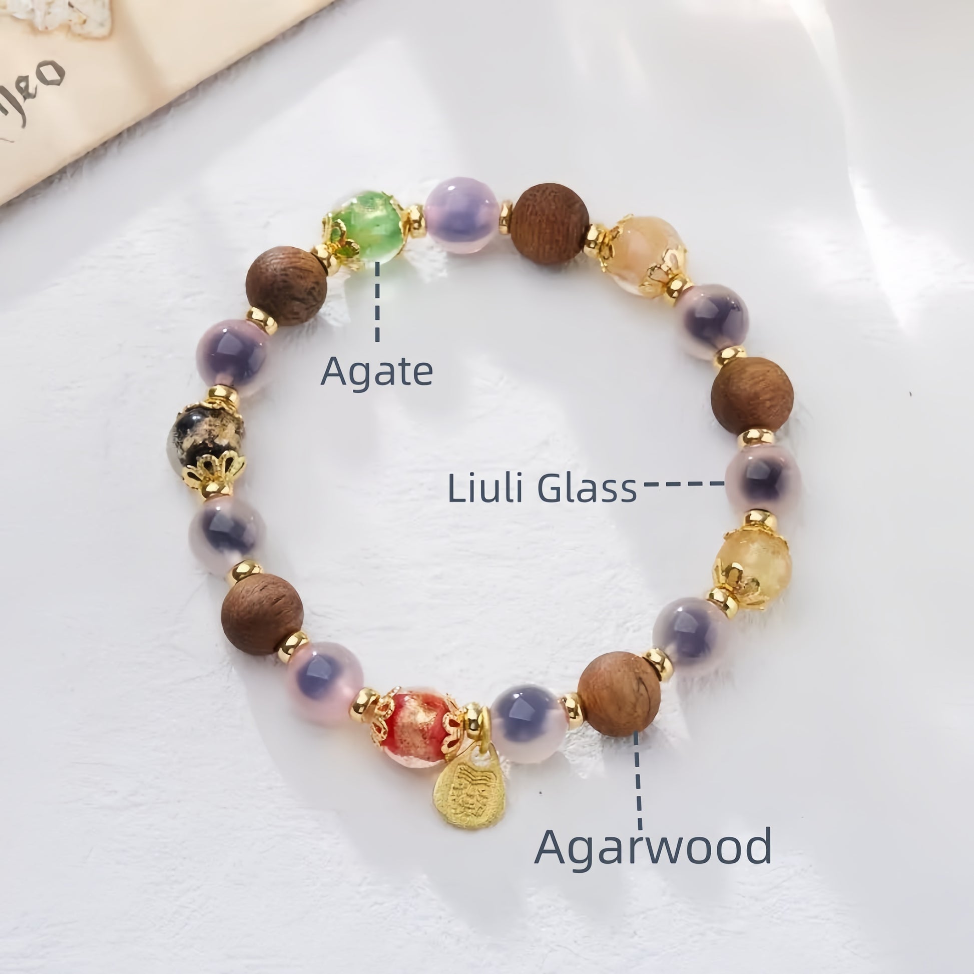 Find tranquility in the soothing wood scent while the vibrant Liuli and Agate harmonize your inner energy for a balanced, joyful aura.