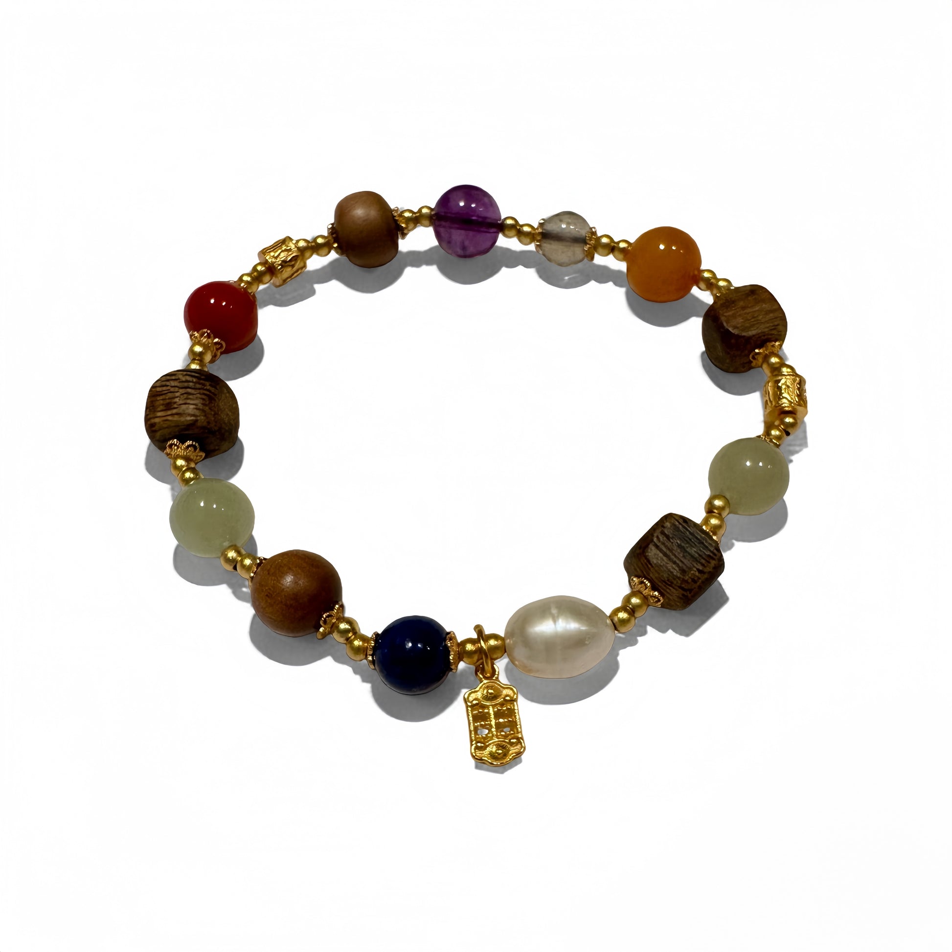 A symphony of protective energies. Sandalwood grounds the spirit, Agarwood dispels shadows, and the varied crystals harmonize the body's chakras, creating a radiant shield of peace.