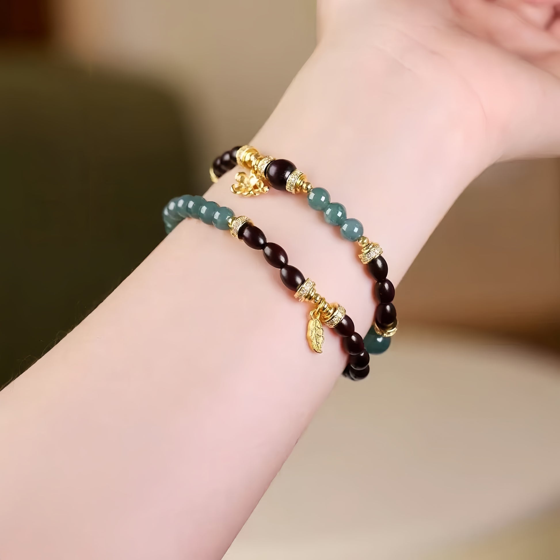 The fluidity of water meets the stability of wood. Blue Jadeite invites clarity and calm, while Red Sandalwood grounds the spirit in protective strength.
