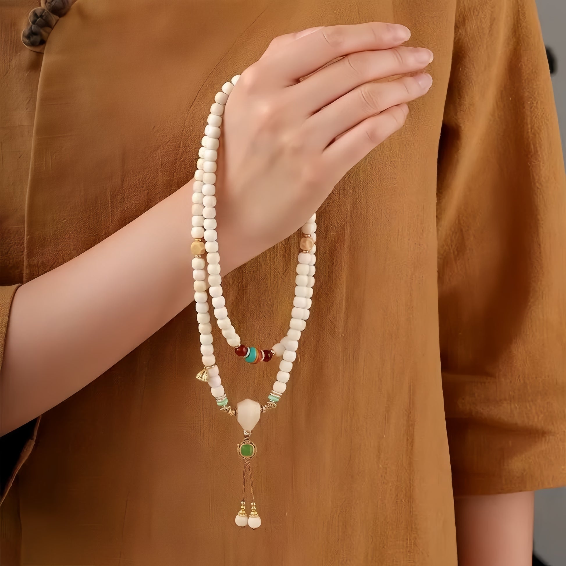 A vessel for clarity. White Bodhi fosters a clear mind and spiritual growth, while Turquoise and Agate offer protection and vitality—guiding the wearer toward inner awakening.